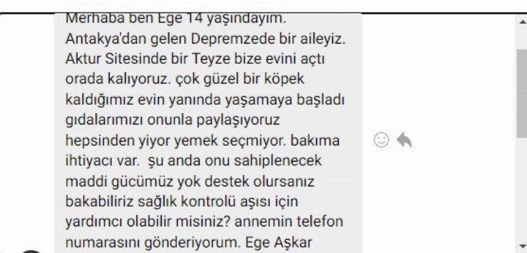 Talebi değerlendiren Bodrum Belediyesi Veteriner Hizmetleri Müdürlüğü ekipleri depremzede aileye ulaşarak sokak köpeğinin aşı, çipleme ve muayenesini yaptı. Yeteri kadar kuru mama, yaş ve ödül paketleri de bırakan ekiplerin bir an olsun yanından ayrılmayan Ege ve kardeşleri ekiplere teşekkür etti.