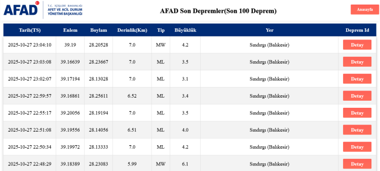 AFAD verilerine göre, 6,5 ile 7 kilometre derinlikte kaydedilen an itibariyle 8 deprem meydana geldi.