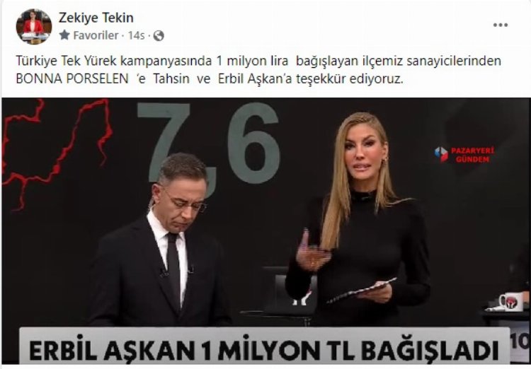 Depremin yaşandığı ilk günden bu yana firma olarak bölgeye destek verdiklerini ifade eden Erbil Aşkan, canlı yayında, “Bu deprem felaketinde vefat eden bütün vatandaşlarımıza Allah’tan rahmet yaralı vatandaşlarımıza acil şifalar diliyoruz. Bonna porselen olarak deprem bölgesinde ilk günden beri yoğun bir şekilde destek veriyoruz. Şeflerimizle aşçılarımızla bölgede çalışıyoruz. Bonna porselen ailesinin bu gün için topladığı 120 bin lirayı 1 milyon liraya tamamlıyoruz. Yaralarımızın sarılması için destek olmak istiyoruz” dedi