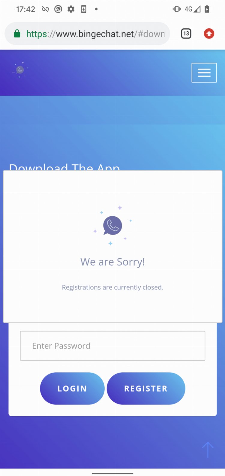 Kötü amaçlı yazılımları araştıran ESET araştırmacısı Lukáš Štefanko, “UYGULAMAYI İNDİR" düğmesine dokunduktan sonra kötü amaçlı uygulama yollayan bir web sitesi bulduklarını ancak ziyaretçilerin oturum açmasını gerektirdiğini ifade ederek, "Kimlik bilgilerimiz yoktu ve kayıt olamadık. Operatörlerin kayıtları yalnızca bekledikleri belirli bir kurbanın, muhtemelen belirli bir IP adresi, coğrafi konum, özel URL veya belirli bir zaman dilimi içinde ziyaret ettiğinde açıldığını düşünüyoruz. BingeChat uygulamasını web sitesi üzerinden indirememiş olsak da, VirusTotal'da bir dağıtım URL’si bulabildik.” Kötü amaçlı uygulamaya Google Play store üzerinden erişim sağlanamıyor" diye konuştu.