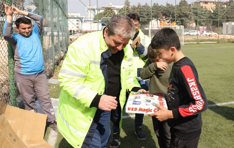 Hatay'da BUSKİ ekipleri depremzedeli çocuklara moral verdi