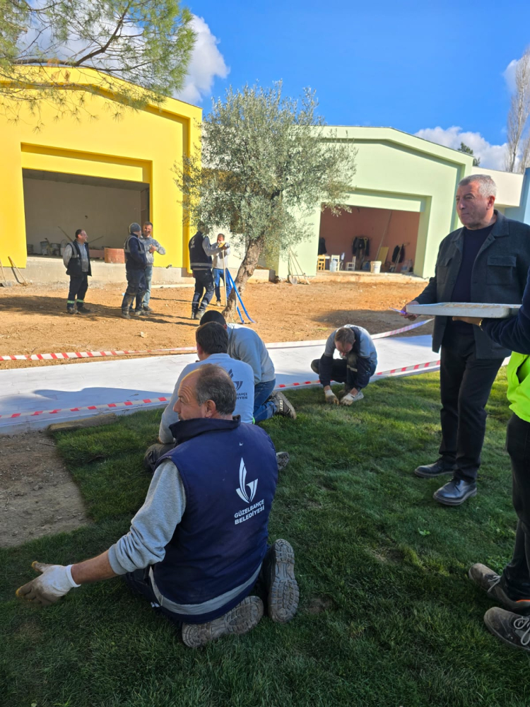İZMİR (İGFA) - İzmir'in Güzelbahçe ilçesinde Belediye Park Bahçeler, Fen İşleri ve Temizlik İşleri personelini sahada ziyaret ederek projelerin hızla gerçekleşmesi için canla başla çalışan işçilere tek tek teşekkür eden Belediye Başkanı Mustafa Günay, elleriyle baklava ikram etti.