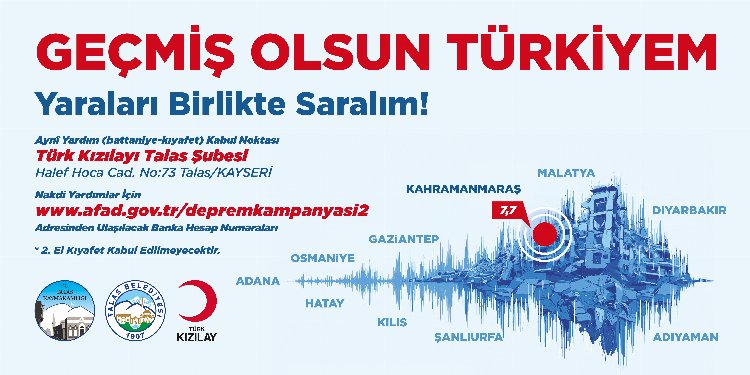 Kayseri Talas Belediyesi, güney ve güneydoğuda çok sayıda ili etkileyen depremde mağdur olan vatandaşlara destek olmak amacıyla yardım kampanyası başlattı.