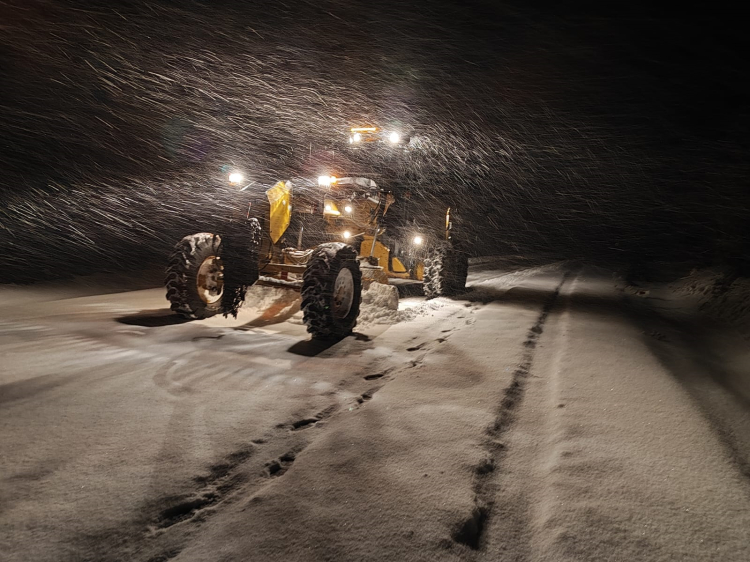 Olumsuz hava koşullarına karşı çalışmalarımız 7/24 devam edecek. Hemşehrilerimden zincirsiz yola çıkmamalarını ve sabah erken saatlerde gizli buzlanmaya dikkat etmelerini özellikle rica ediyorum” ifadelerini kullandı.