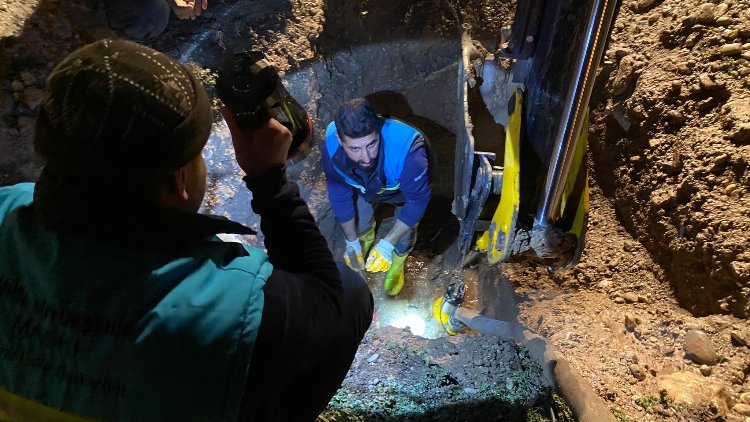 MASKİ Genel Müdürlüğü'nün Kahramanmaraş Pazarcık’ta görev yapan içme suyu ekibi gece saatlerinde de altyapı tamiratlarına devam ediyor.