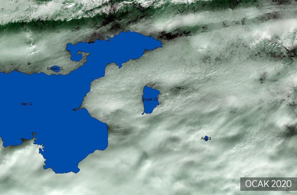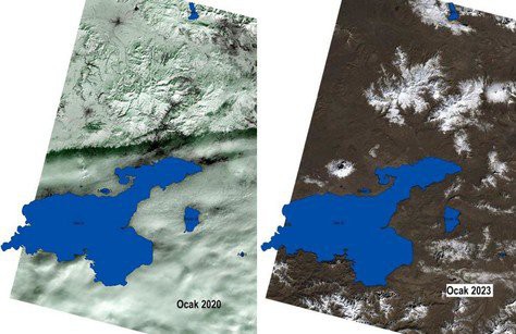 Van Gölü havzası ve çevresini gösteren son dört yılın ocak ayına ait görüntülere göre, havzanın aldığı kar yağışı oranı her geçen yıl azalıyor.