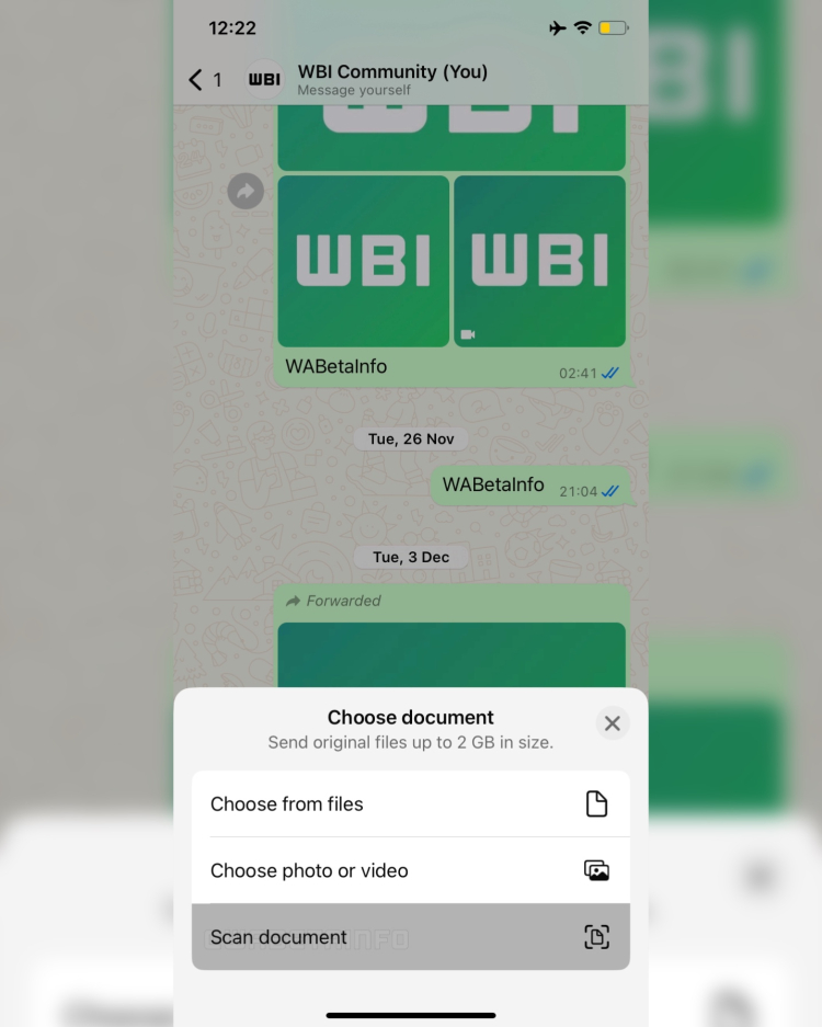 WhatsApp Beta'nın aktardığına göre, belge tarama özelliği, şu an için sadece iPhone kullanıcılarına sunuldu.
